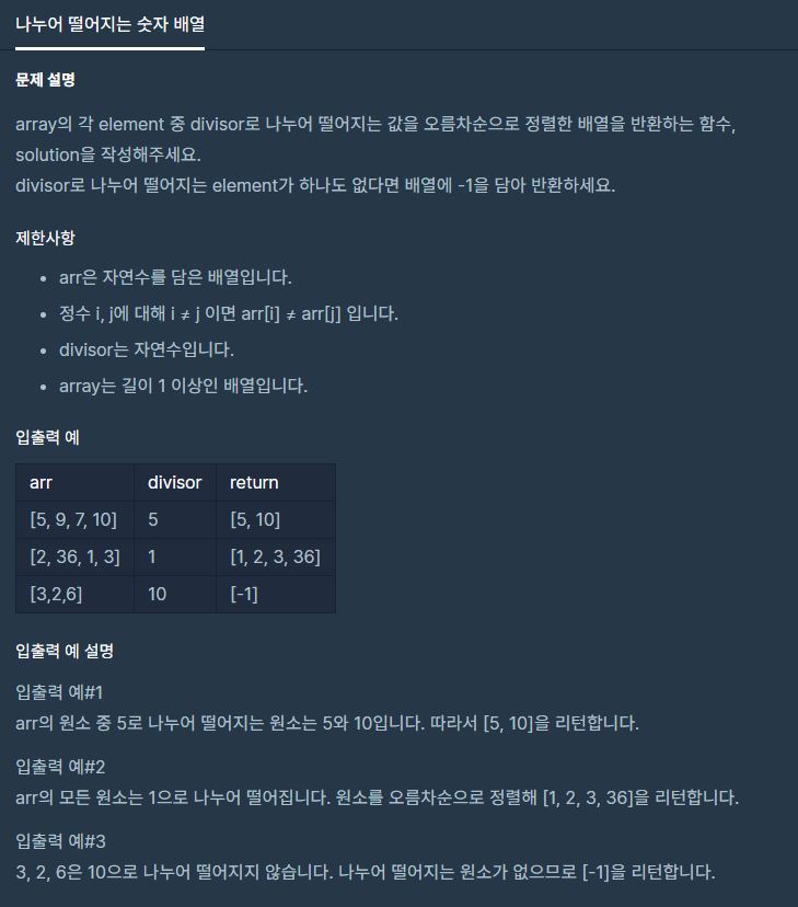 - 만약 array가 divisor를 나누어 0이면 그걸 다시 array배열로 만들어주면서 answer에다가 저장된다