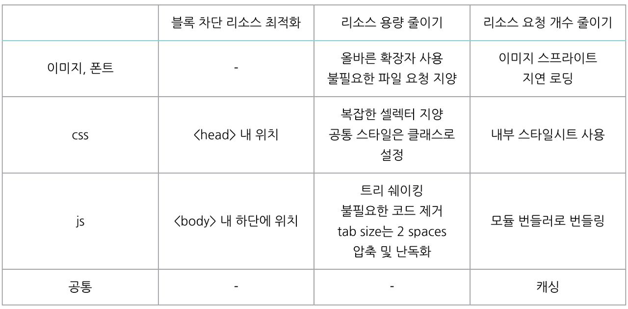 리소스의 용량을 줄임으로서 리소스 라운로드 시간을 최적화할 수 있다.