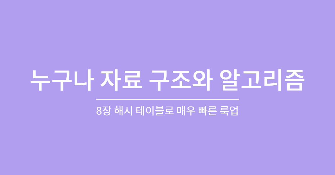 8장이 끝날 때까지 데이터를 O(1) 만에 룩업할 수 있는 해시 테이블이라는 특수한 자료 구조의 사용법을 배울 것이다.
