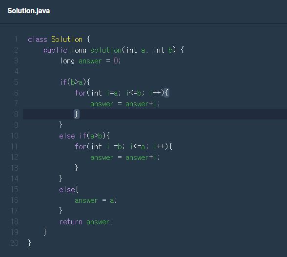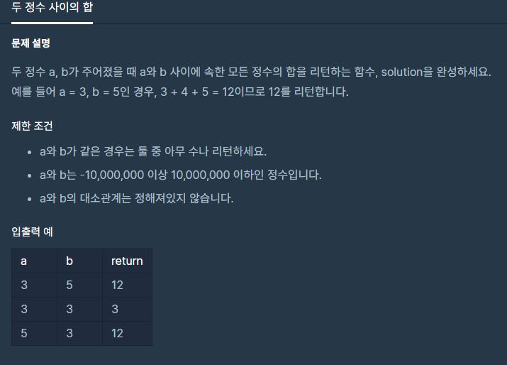 - 두 정수 a와 b를 비교해 속한 모든 정수의 합을 구하는 문제