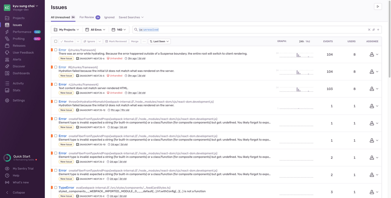 현재 Sentry를 적용하여 사이트 프로젝트의 이슈 발생 시 알림을 받고있다. Sentry와 같은 강력한 도구는 유용한 통찰력으로 내가 모르던 오류도 어디서 어떻게 발생했는지 알 수 있기 때문에 에러를 줄여나가면서 지급해야 하는 비용이 줄어든다는 점에서 엄청 매력적인 도구인 것 같다.