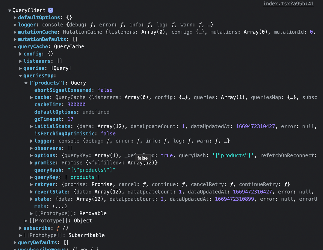 이제 자식 내에서 useQueryClient를 호출하면 위에서 만들어진 객체의 정보를 얻을 수 있다.