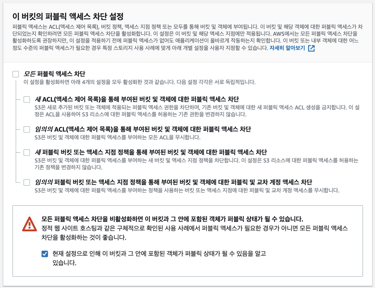 - 버킷이 퍼블릭 공개라는 점