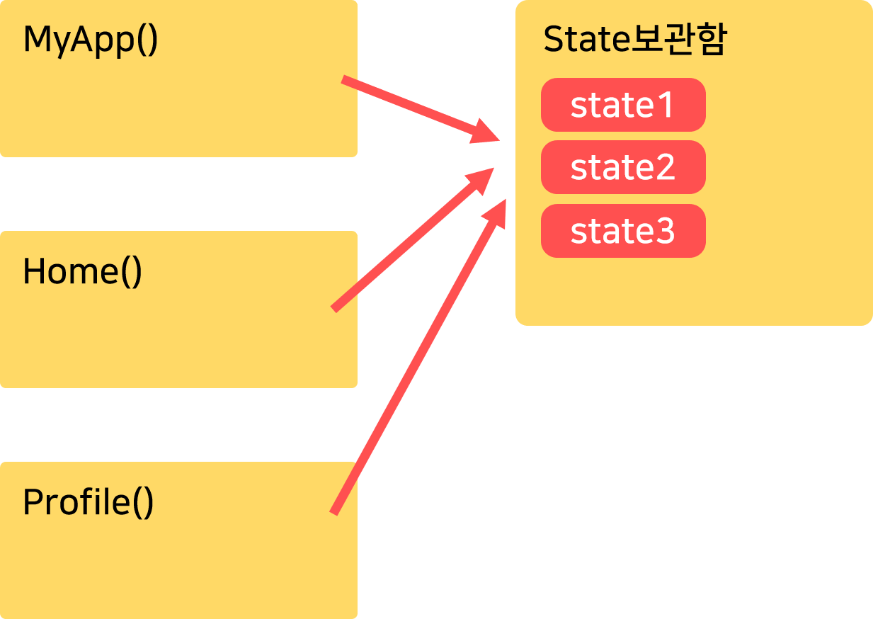 - 전송 없이 모든 위젯이 state를 직접 가져다쓸 수 있게 만들어주는 패키지이다.