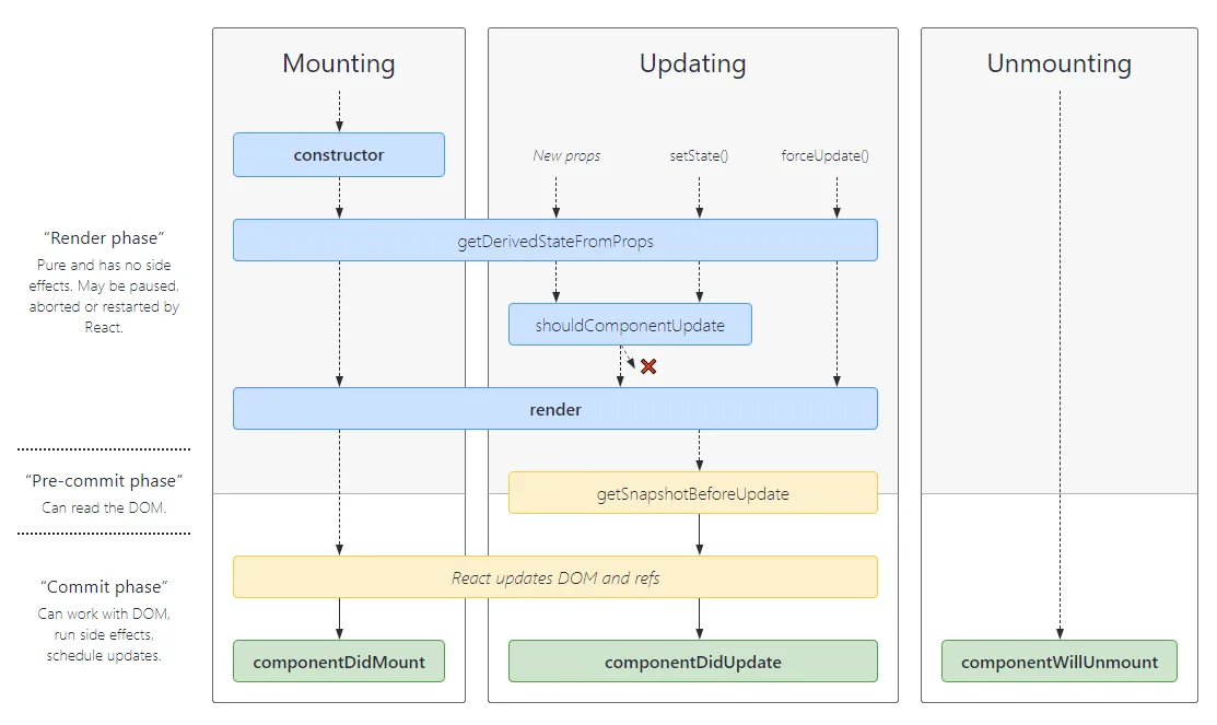 이 부분에서는 컴포넌트가 화면에 표시되기 직전과 직후에 실행되는 메소드들이 중요한 역할을 한다. 아래 그림을 통해 지금까지 쭉 살펴본 렌더링 프로세스를 다시한번 점검 해 보자.