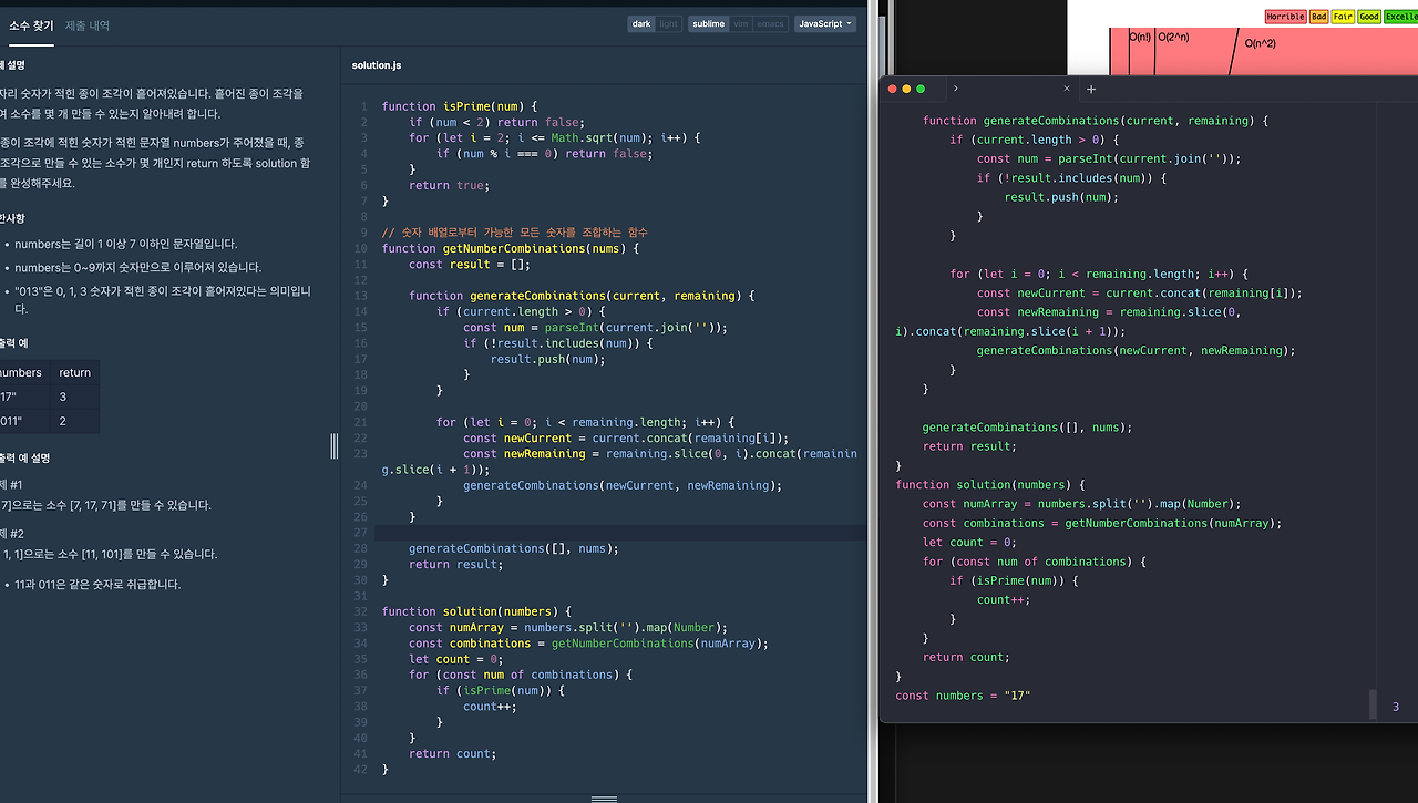 | 순열 | ‘순열을 이용하여 모든 경우의 수를 탐색‘하는 방법. 순열은 서로 다른 n개 중에서 r개를 선택하여 나열하는 방법을 의미 | 경우의 수가 적을 때 사용하면 유용함 | 경우의 수가 많을 경우 시간이 오래 걸림 |