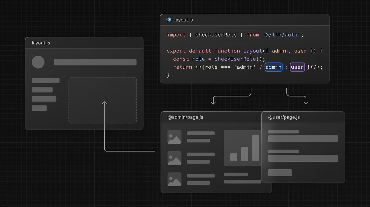 - 어떤 조건에 따라서, 특히 대시보드 같은 서비스를 만들 때는 유저의 권한에 따라서 관리자 권한인지 일반 사용자 권한인지 등 이런 역할에 따라서 다른 컴포넌트를 보여줘야 될 때가 있다. 그런 경우에 조건부 라우트를 작업을 할 때 병렬 라우트를 사용할 수가 있다.