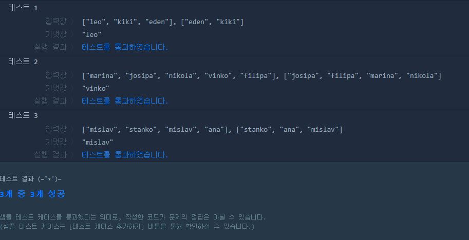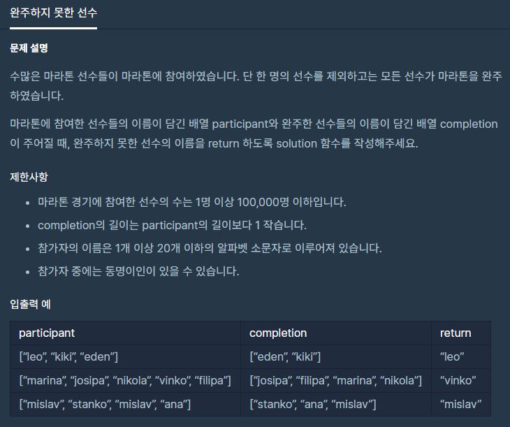 -> 첫번째 for 문이 끝나면 두 번째 for문에서 이제 완주자를 참여자처럼 map에다가 저장