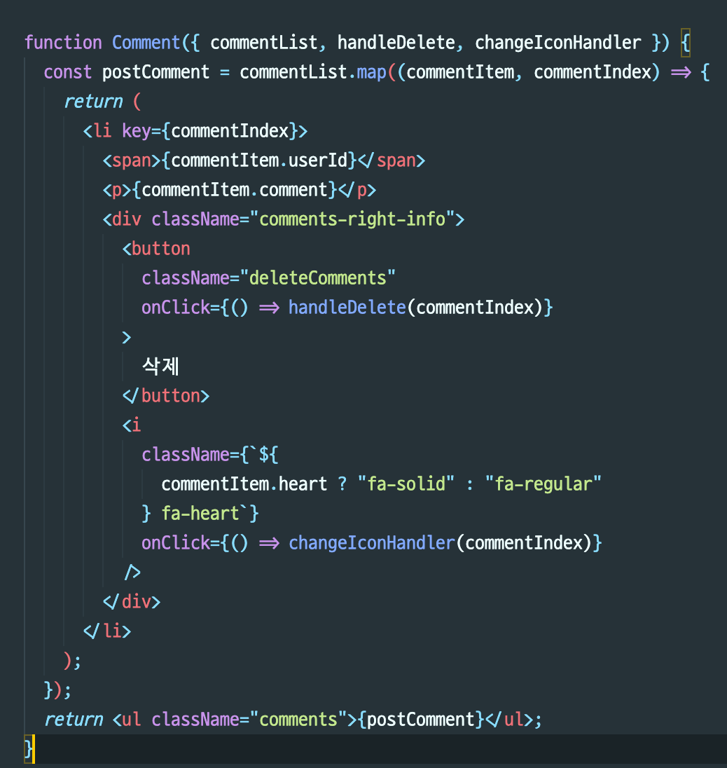 - commentList.map으로 돌리면서 해당 배열의 키값으로 인덱스를 부여했다
